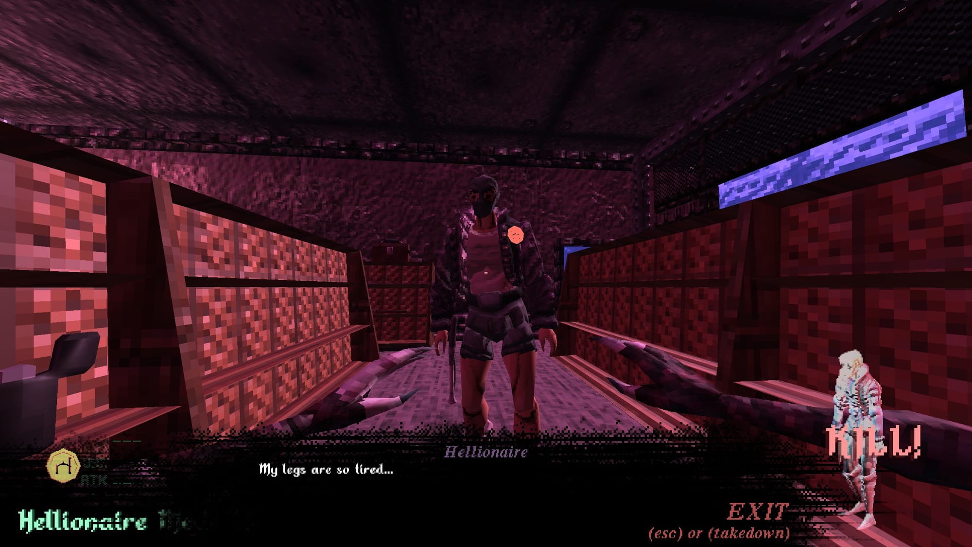 Each level is deceptively large, virtual jungle gyms with a myriad of approach options, all of which are distinct from one another. Take Chug Mart for instance, a convenience store sitting at the edge of the world. This level emphasizes the handful of ways to get to the main objective of this game. While death may not be unavoidable for both the player and the NPCs, direct combat is. Stealing a Hellionaire Medallion after assassinating an enemy practically unlocks another path to complete the stages in this game.